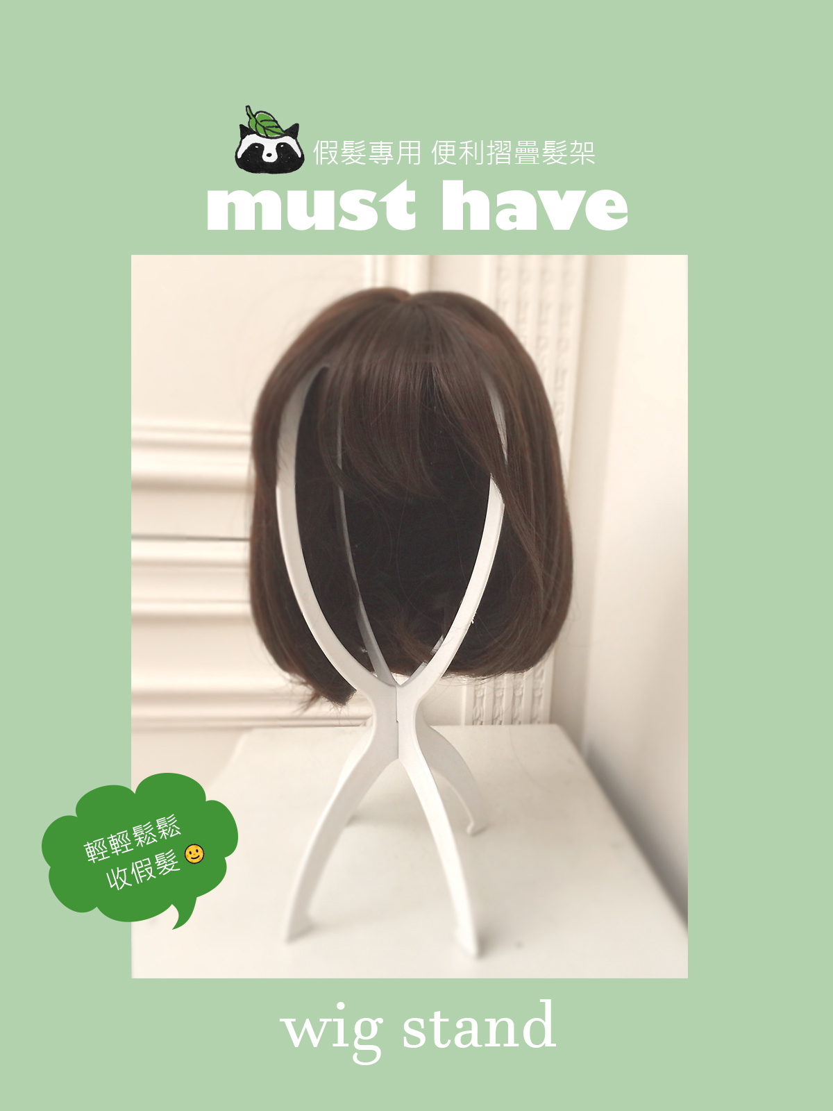 備註:好收好裝,二片假髮架呈十字狀組合,即可快速完成髮架。